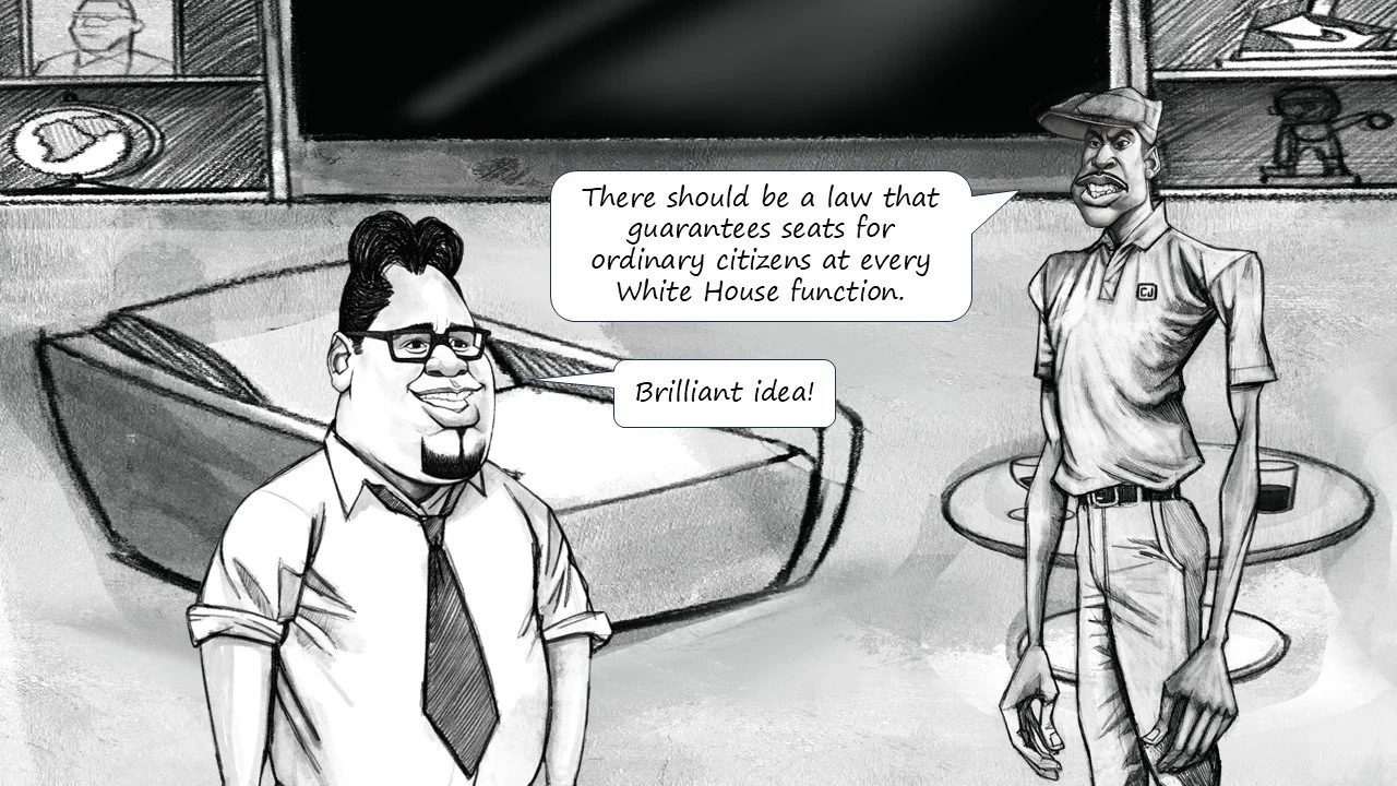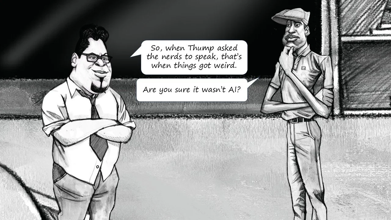 Comic: Revenge of the Nerds Pt. One 1/5/26 I can’t make this up: https://www.youtube.com/shorts/sZcB4pD8gW4 & https://www.ms.now/top-stories/latest/trump-big-tech-dinner-zuckerberg-cook-rcna229425 & https://www.usatoday.com/story/news/politics/2025/09/04/trump-hosts-white-house-dinner-without-musk/85973868007/